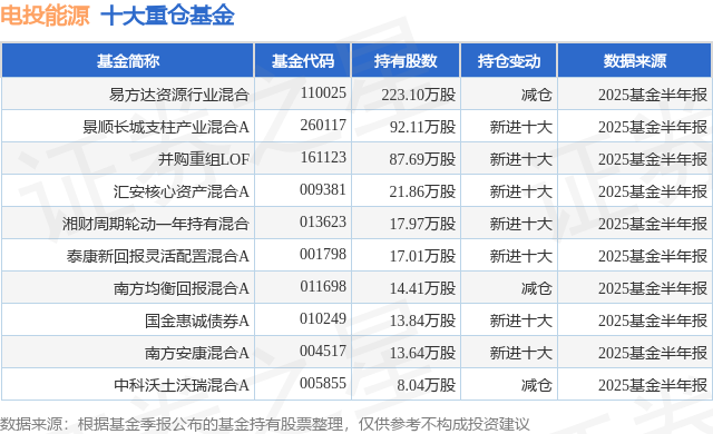 重仓电投能源的前十大公募基金请见下表:金御优配